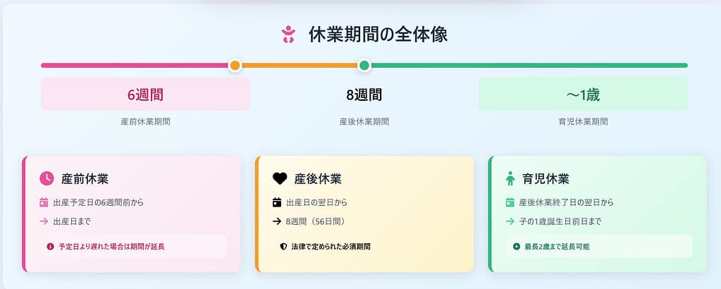 【タイミングの目安】 出産予定日の6週間前(多胎妊娠の場合は14週間前)から産前休業開始
